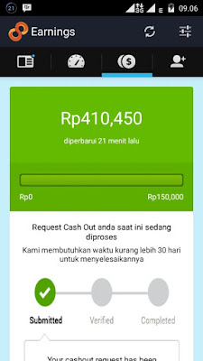 Itu salah satu akun dari pengguna 8share indonesia yang berhasil mengumpulkan cashout yang mencapai 410 ribu. diamana kita bisa mencairkan uang dari 8share jika jumlah cash out mencapai Rp.150.000