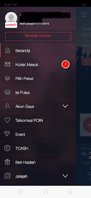 3. Setelah login silahkan masuk ke menu strip 3 di pojok kiri atas pada aplikasi MyTelkomsel kemudian pilih paket