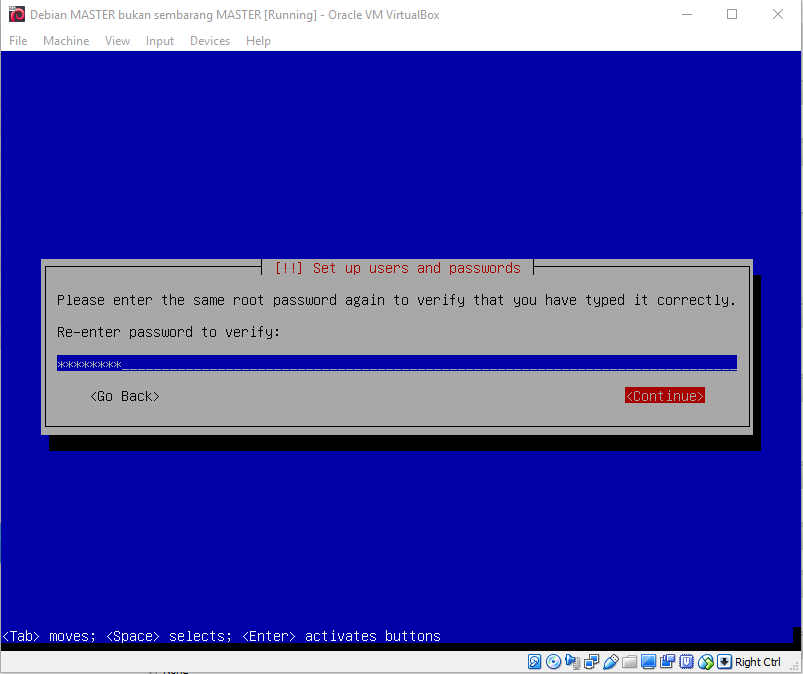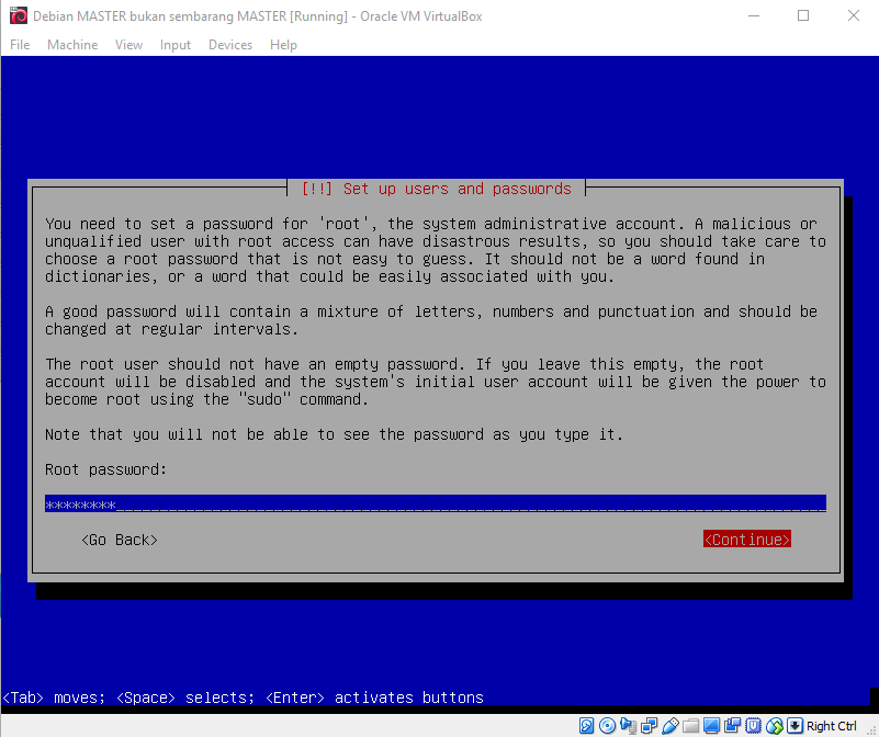 Selanjutnya kita masuk ke menu Root Password, buat Password yang mudah diingat, > Continue