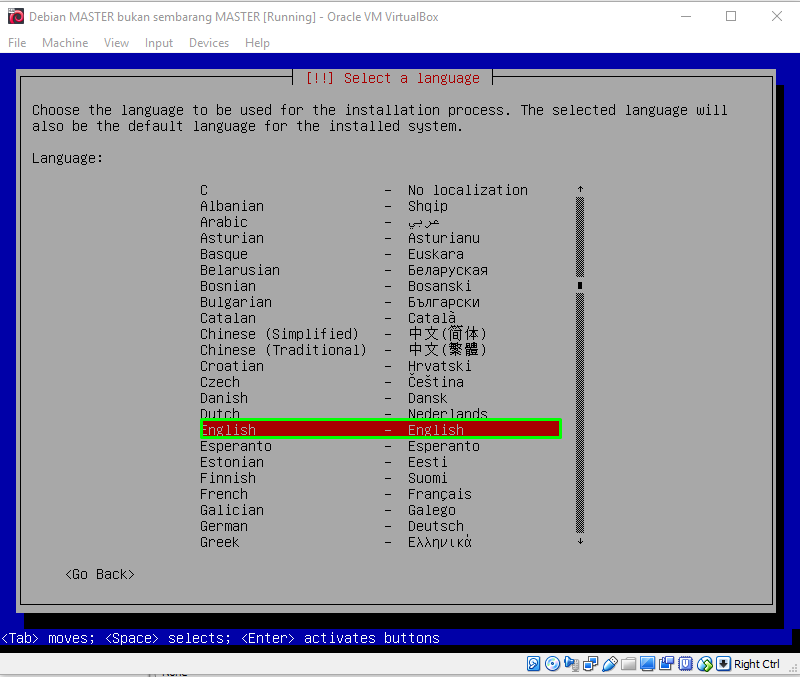 Pada Select a language (pilih bahasa) pilih English > Enter