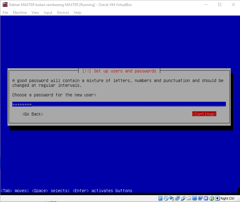 Buat password untuk new user, Buat password yang mudah diingat > Continue