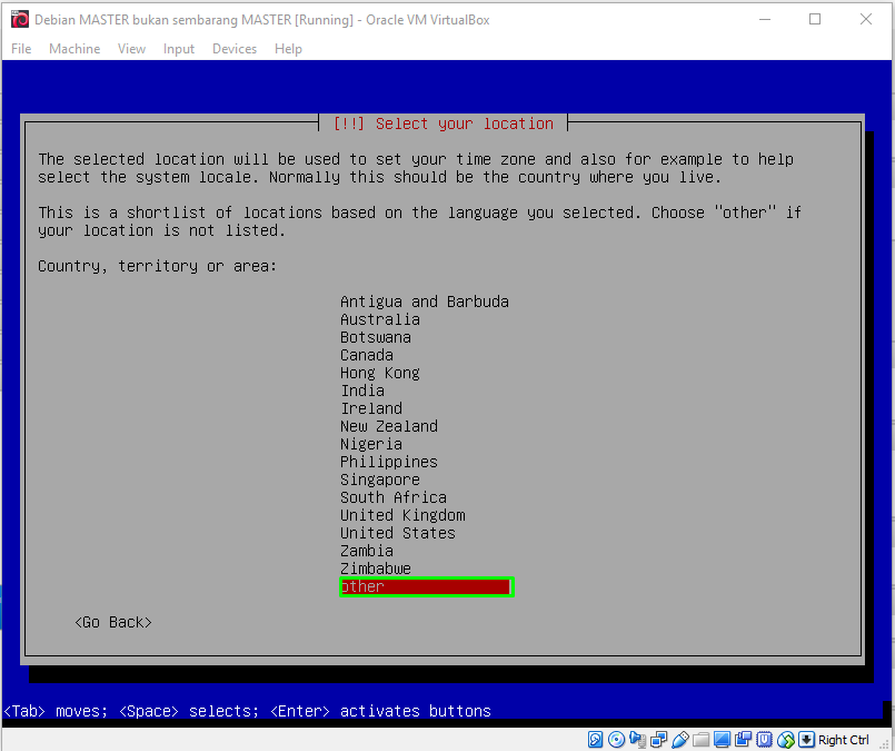 - Selanjutnya pada Select your location kita pilih negara kita, pilih Other