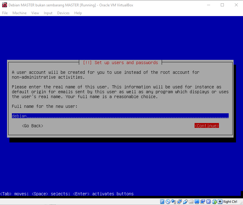 Selanjutnya beri nama untuk user, Nama Bebas > Continue