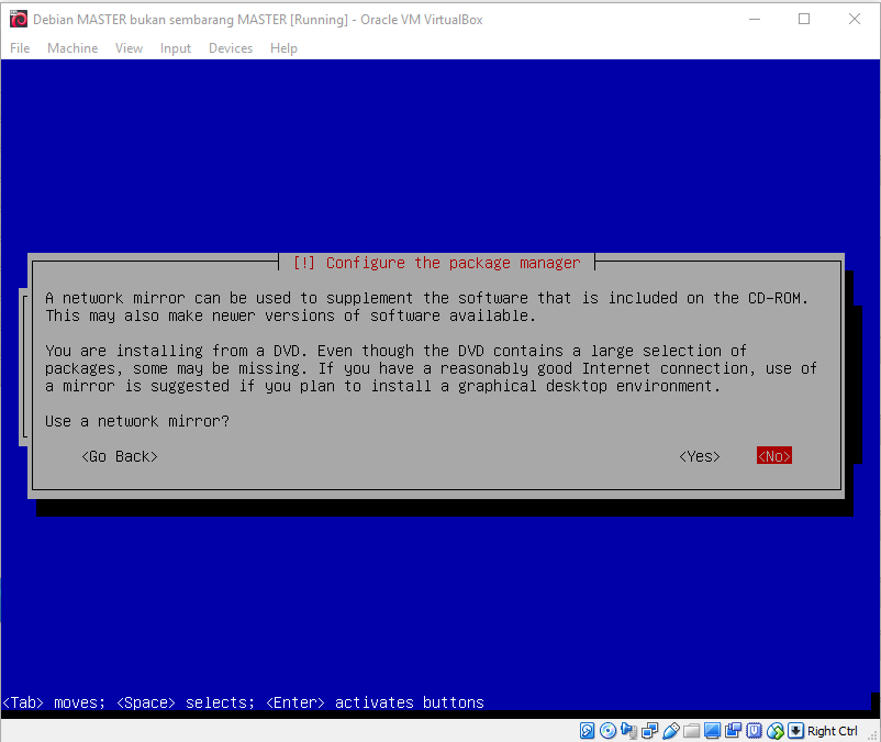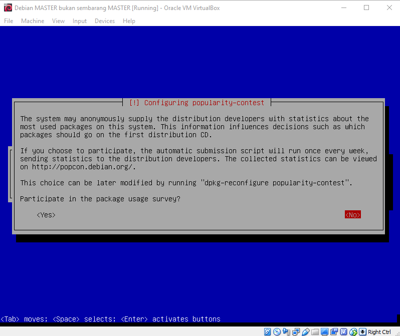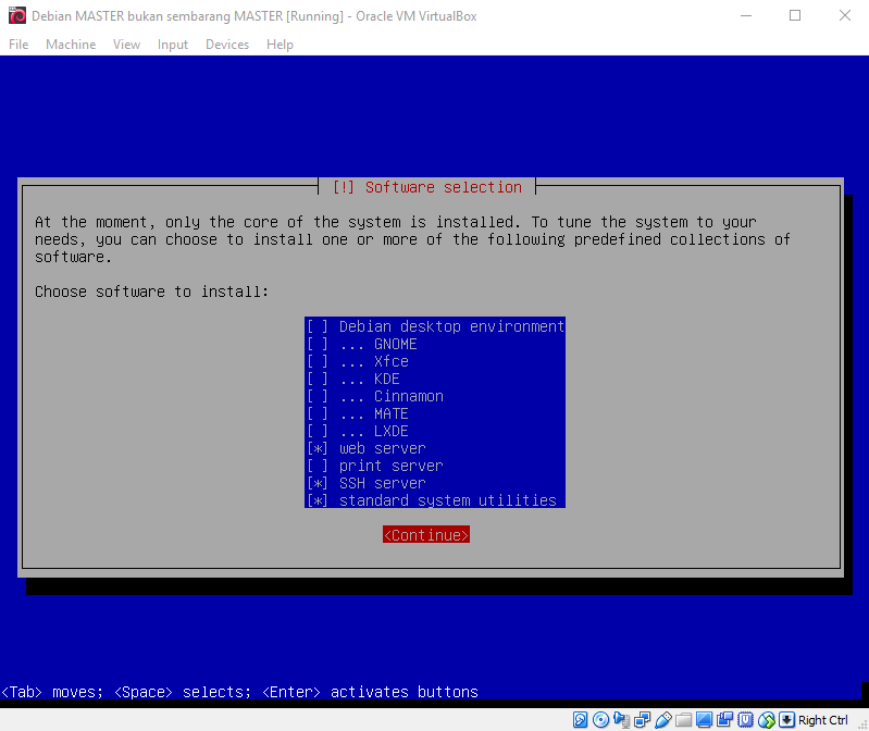 Selanjutnya kita akan memasuki menu Software Selection, pilih sesuai kebutuhan kalian dengan beri tanda(*) dengan menekan Spasi, kemudian tekan TAB untuk berpindah baris