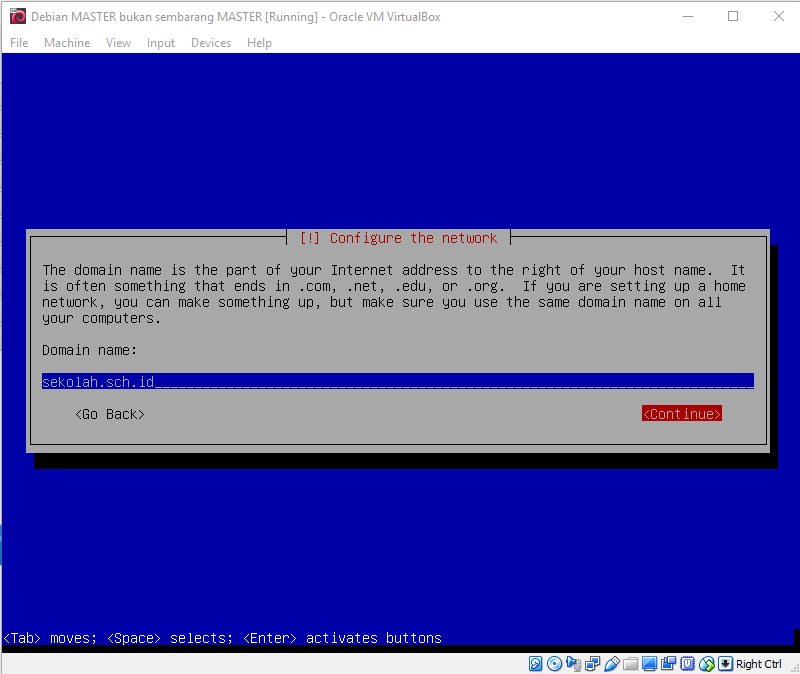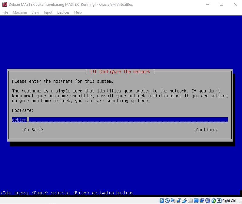 - Untuk nama Hostname Bebas, disini saya menggunakan nama debian