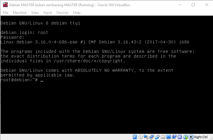 Setelah reboot, Login pada debian bisa menggunakan User root atau User non-root dengan password yang telah dibuat.