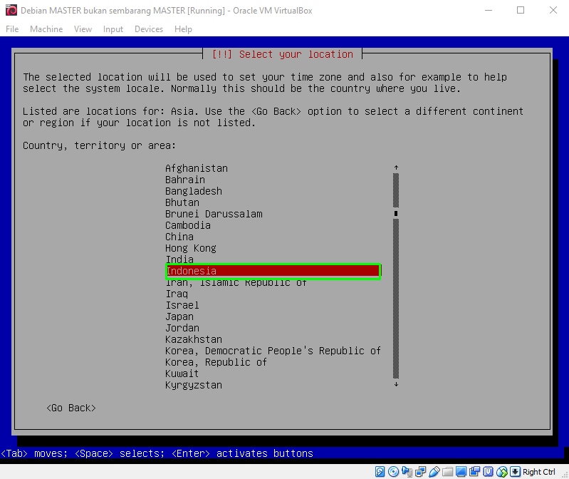 - Kemudian kita pilih negara kita yaitu Indonesia > Enter
