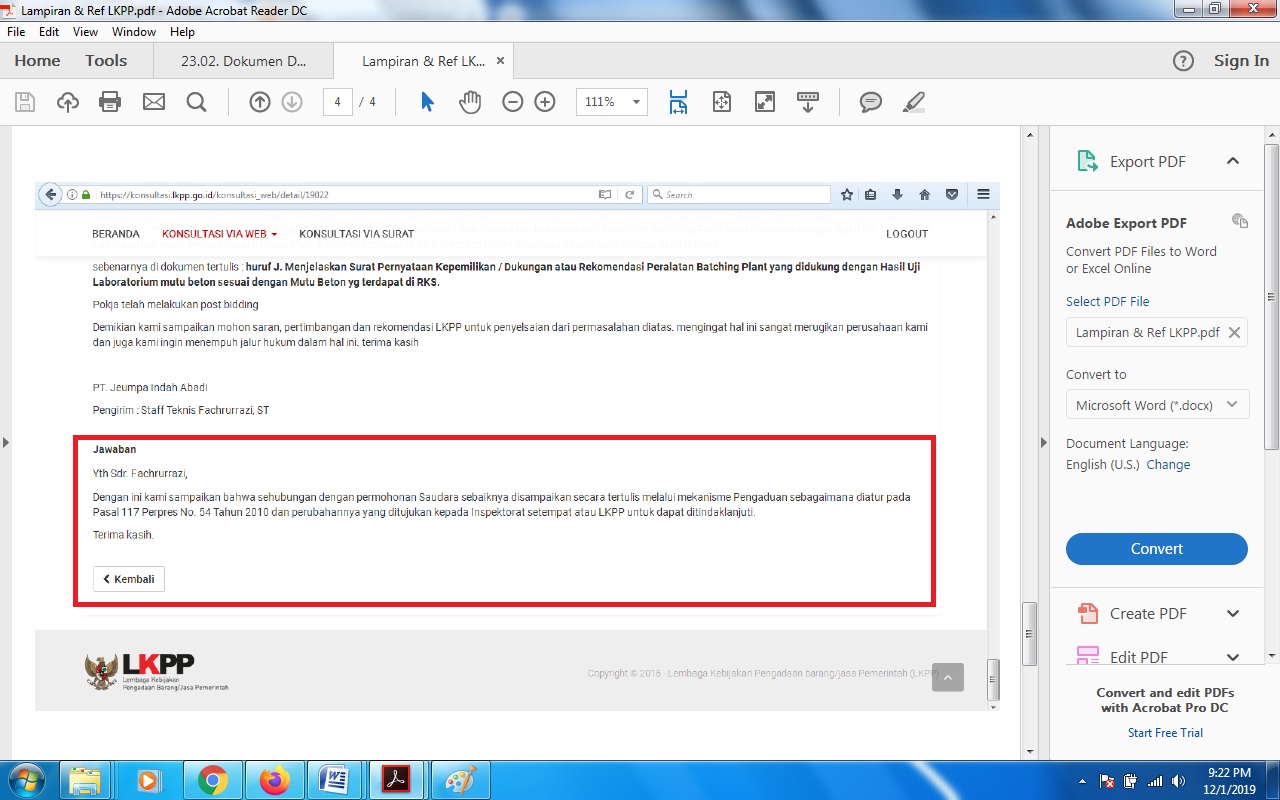 Berikut Jawaban Dari Pokja Lelang silahkan didownload :